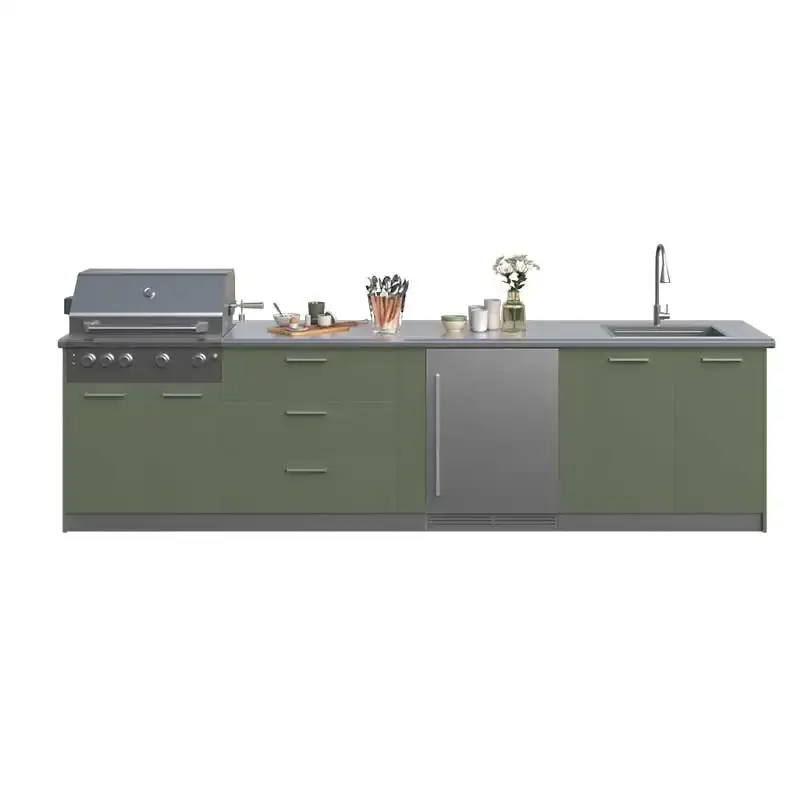 Set di 4 mobili da cucina da esterno in acciaio inossidabile